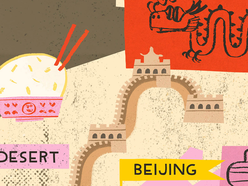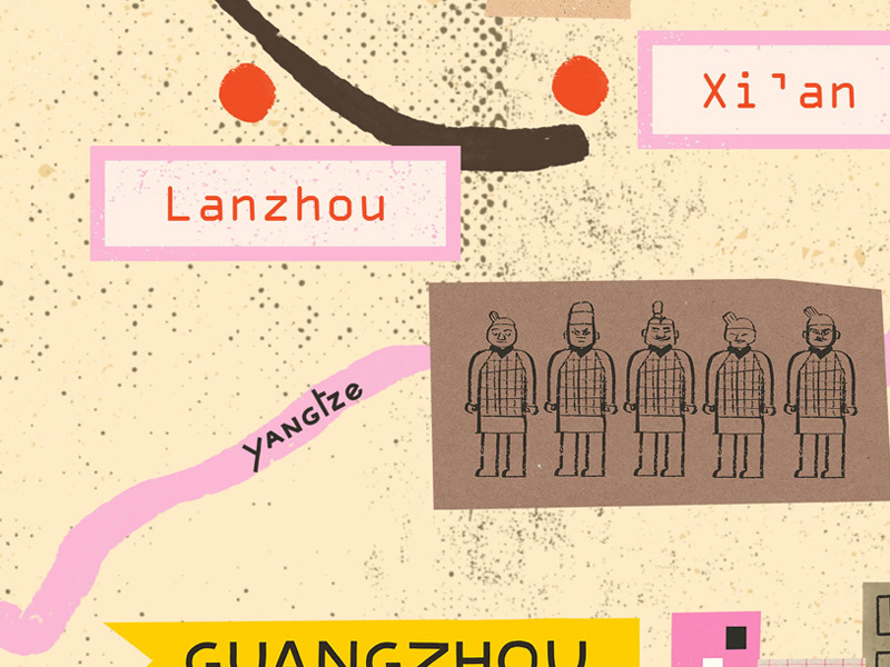 Map of China where you can see the Silk Road, the ancient network of trade routes that connected China with Europe starting in the city of Xi'an. Along with the Yangtze river meandering across the country.