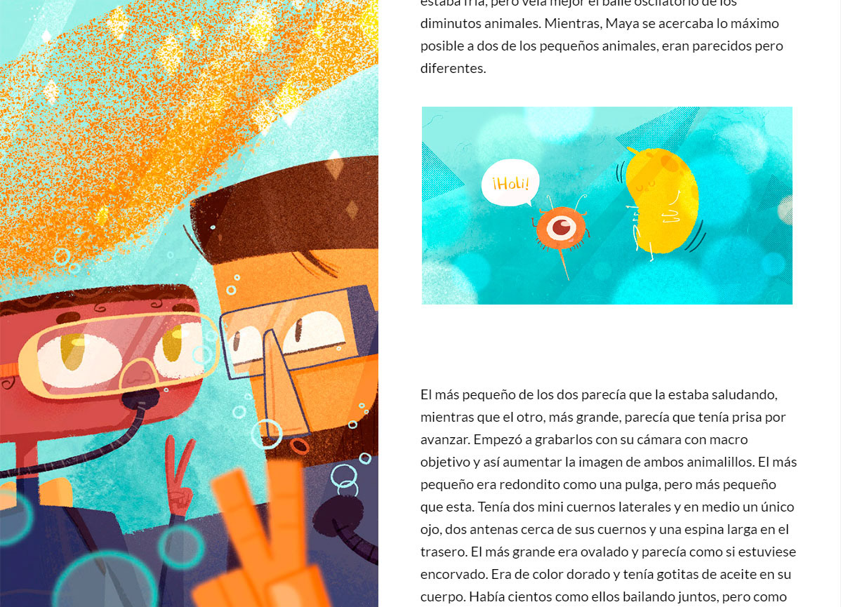 Illustrations for a short story for Principia KIDS web about discovering balanus, small creatures that live in the sea.