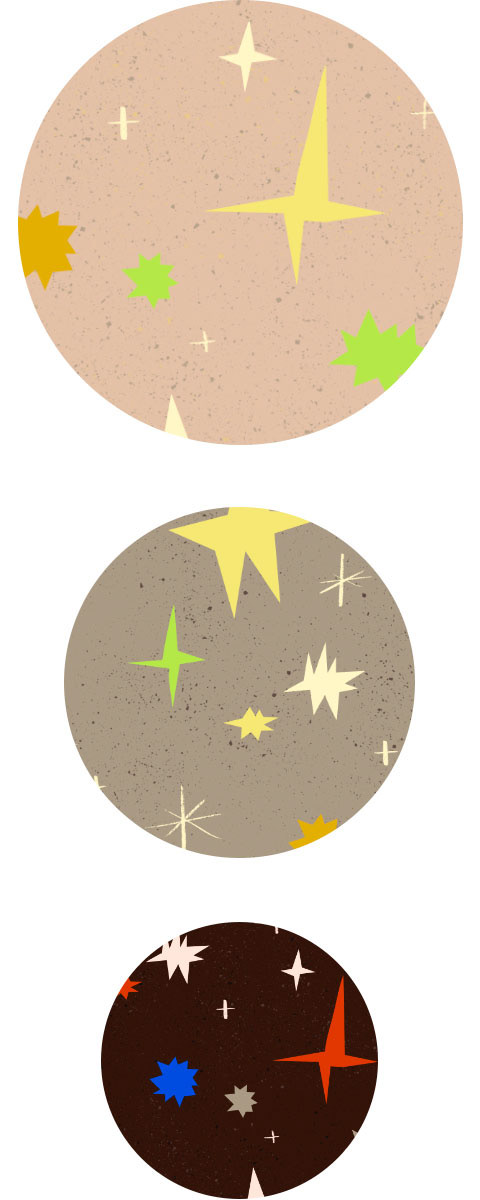 Collection of space patterns for children's clothing and textiles. Who doesn't love looking at the starry sky at night and dreaming what could there be? This collection has 8 seamless patterns with multiple colorways ready to be used on different products. It is perfect for kids bedding as well as kids apparel.