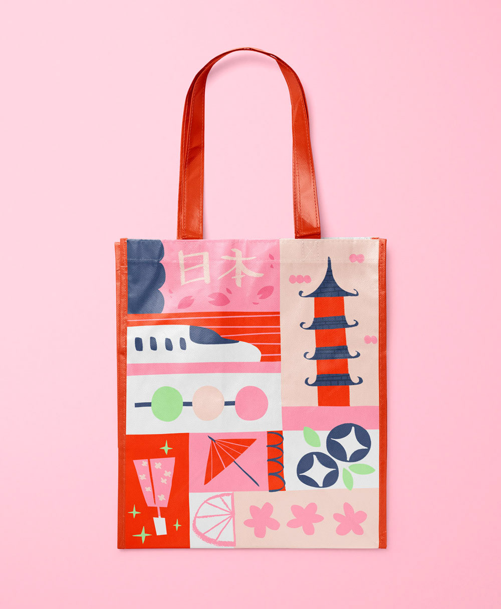 Reusable bag with a geometric flower pattern by Cris Tamay
